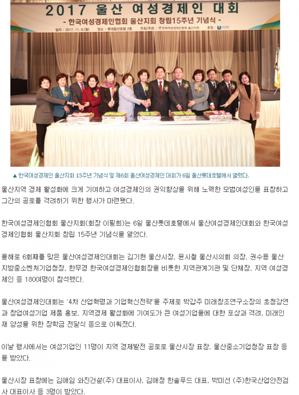 2017년 울산 여성경제인 대회 울산시장 표창패 수상 페이지 정보 작성자 최고관리자 댓글 0건 조회 2,509회 작성일 17-11-09 14:43 본문 2017년 울산여성 경제인 대회 및 한국여성경제인협회 울산지회 창립 15주년을 맞아 우리회사 대표이사님께서울산시장 표창패를 수상하였습니다. 답변 목록 댓글목록 댓글목록 등록된 댓글이 없습니다.